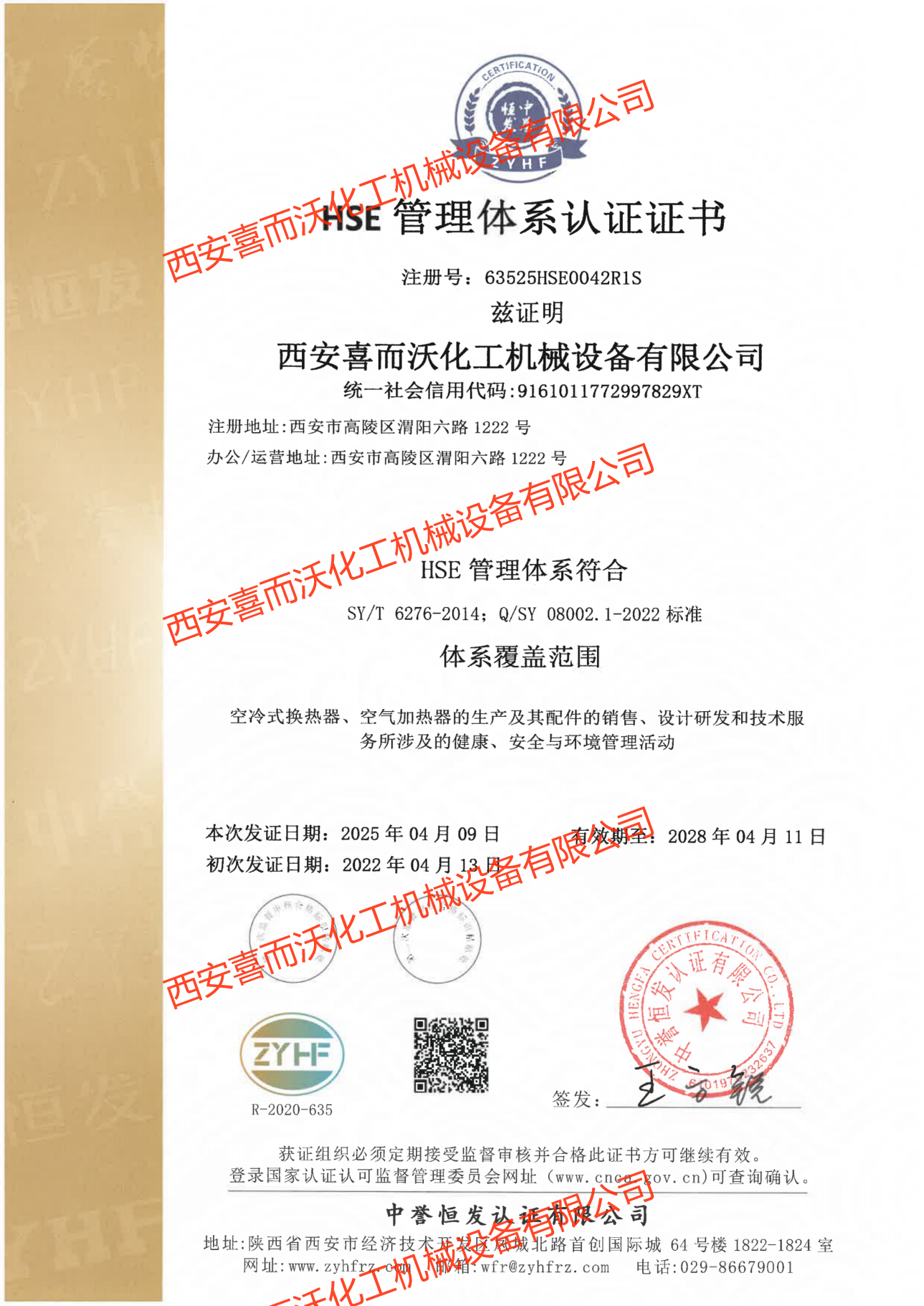 HSE管理體系認(rèn)證證書