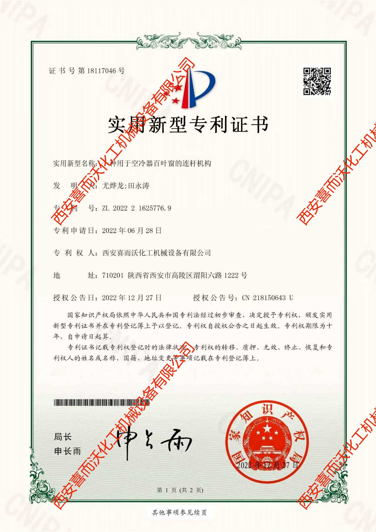 空冷式熱交換器產(chǎn)品安全注冊證